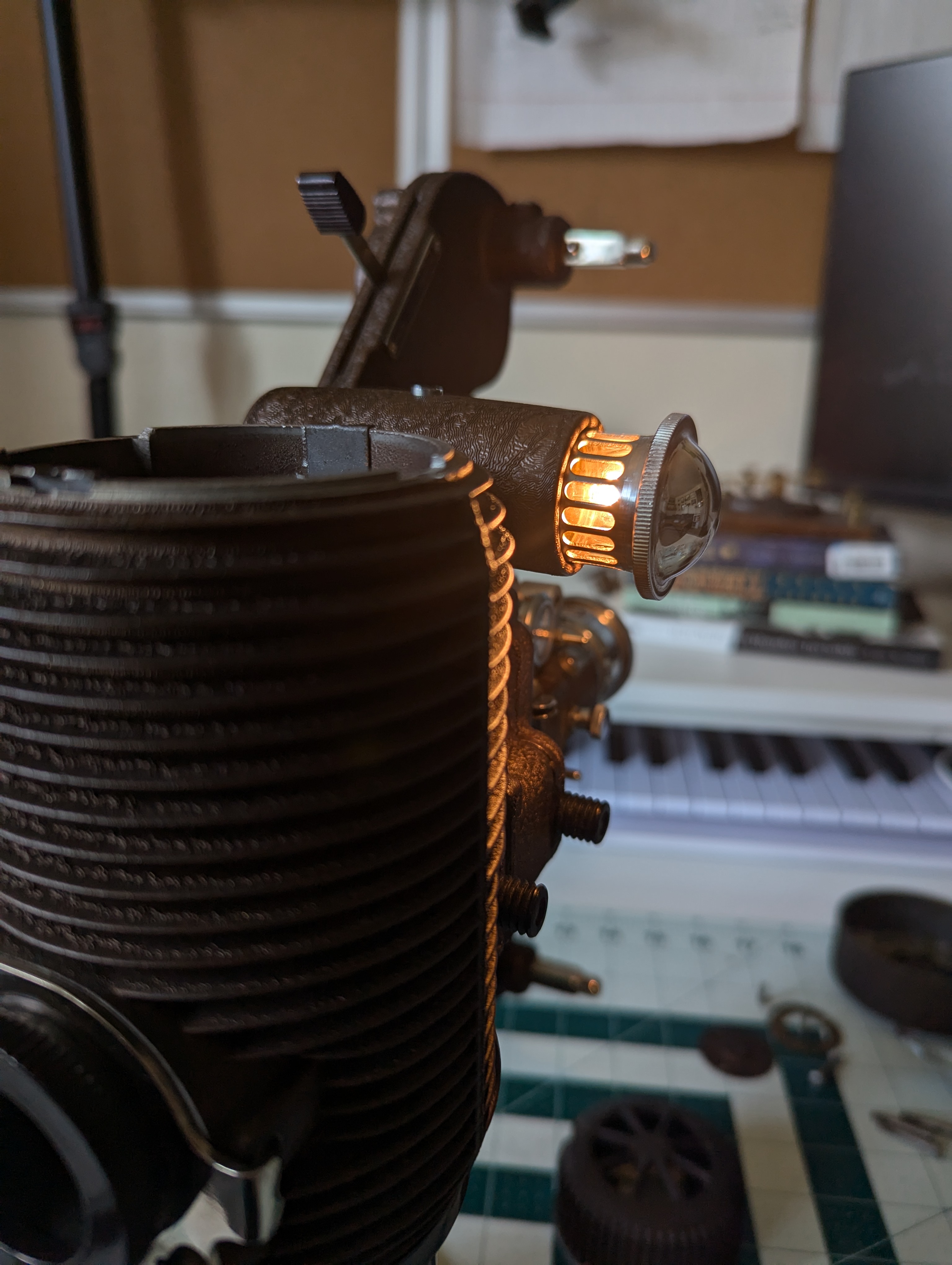 The only other section that was in slightly-rough shape was the motor. I hadn't fully removed the motor from its casing, but I could see a fair amount of corrosion/degradation in the nooks and crannies, plus one of the electrical wires connecting it to the rest of the projector had already broken from wear. So I'm not totally sure if I'll be able to rebuild the motor, but maybe once I pull apart the rest of it I'll have a better idea of the difficulty.