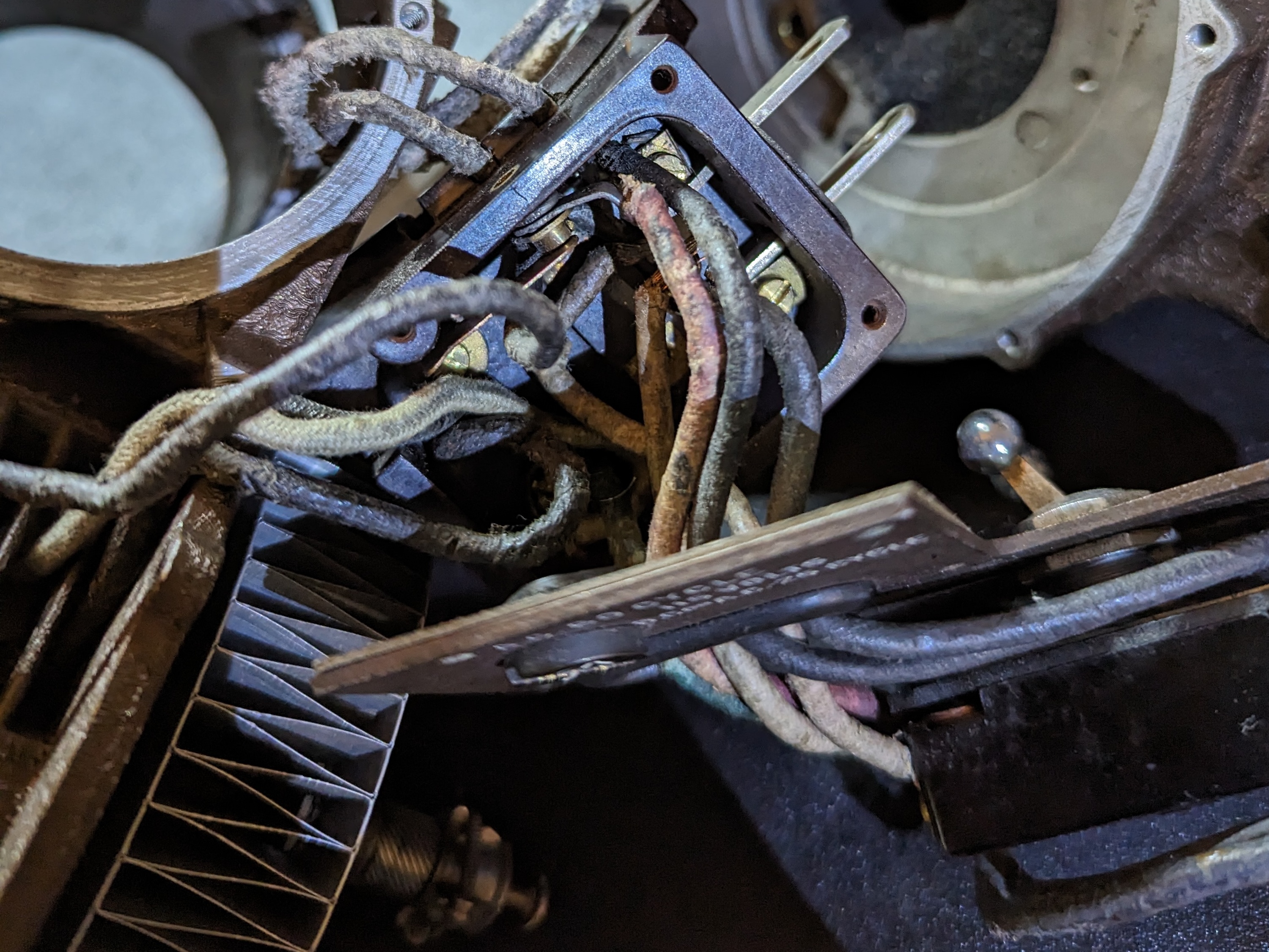 Once that was done I disconnected all the wiring and separated out all the different components. I gave it a quick polish and blast of canned air to clear out some dust, otherwise almost everything was in immaculate shape besides the wiring (probably because most of the components were metal).