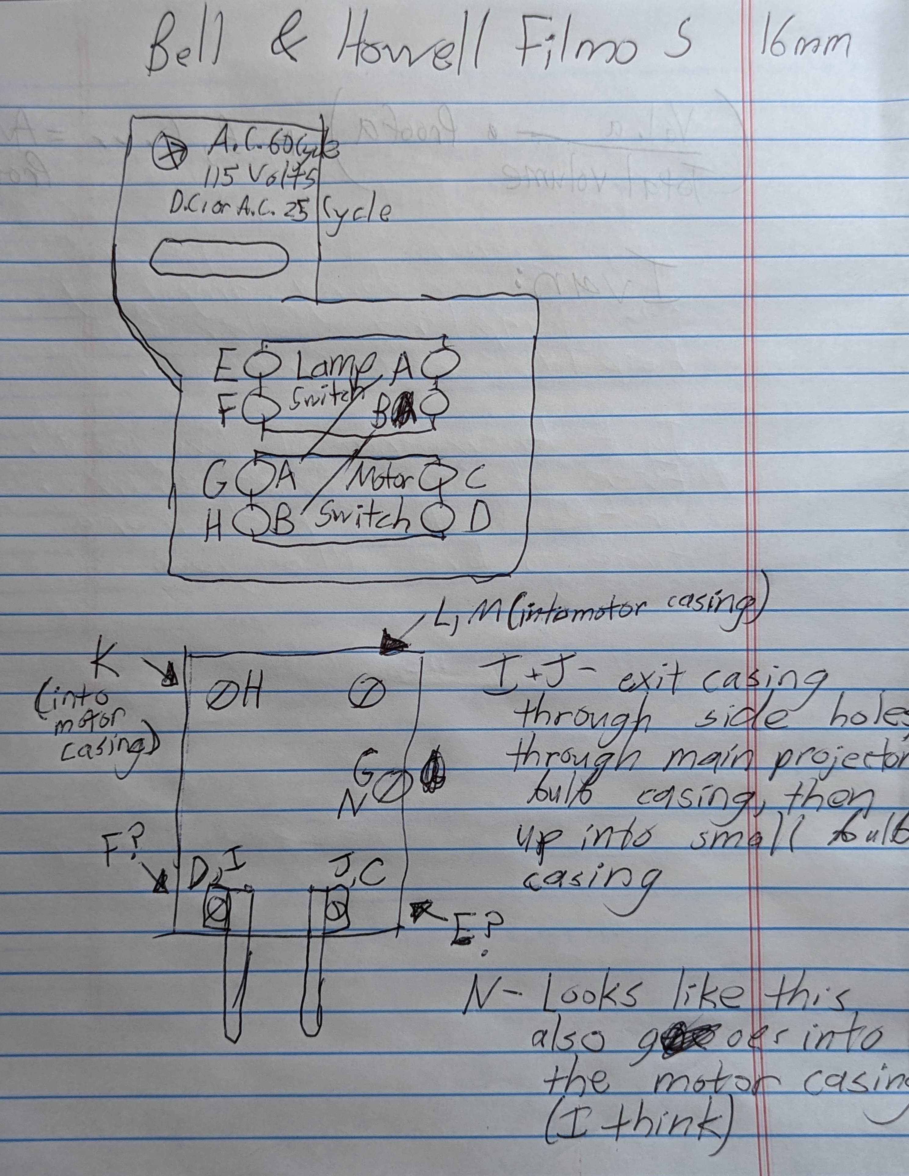In the interest of not electrocuting myself, not lighting anything on fire, and not spending an inordinate amount of time trying to replicate the wiring paths I mapped out all of the electrical connections before proceeding and drew up a quick schematic.